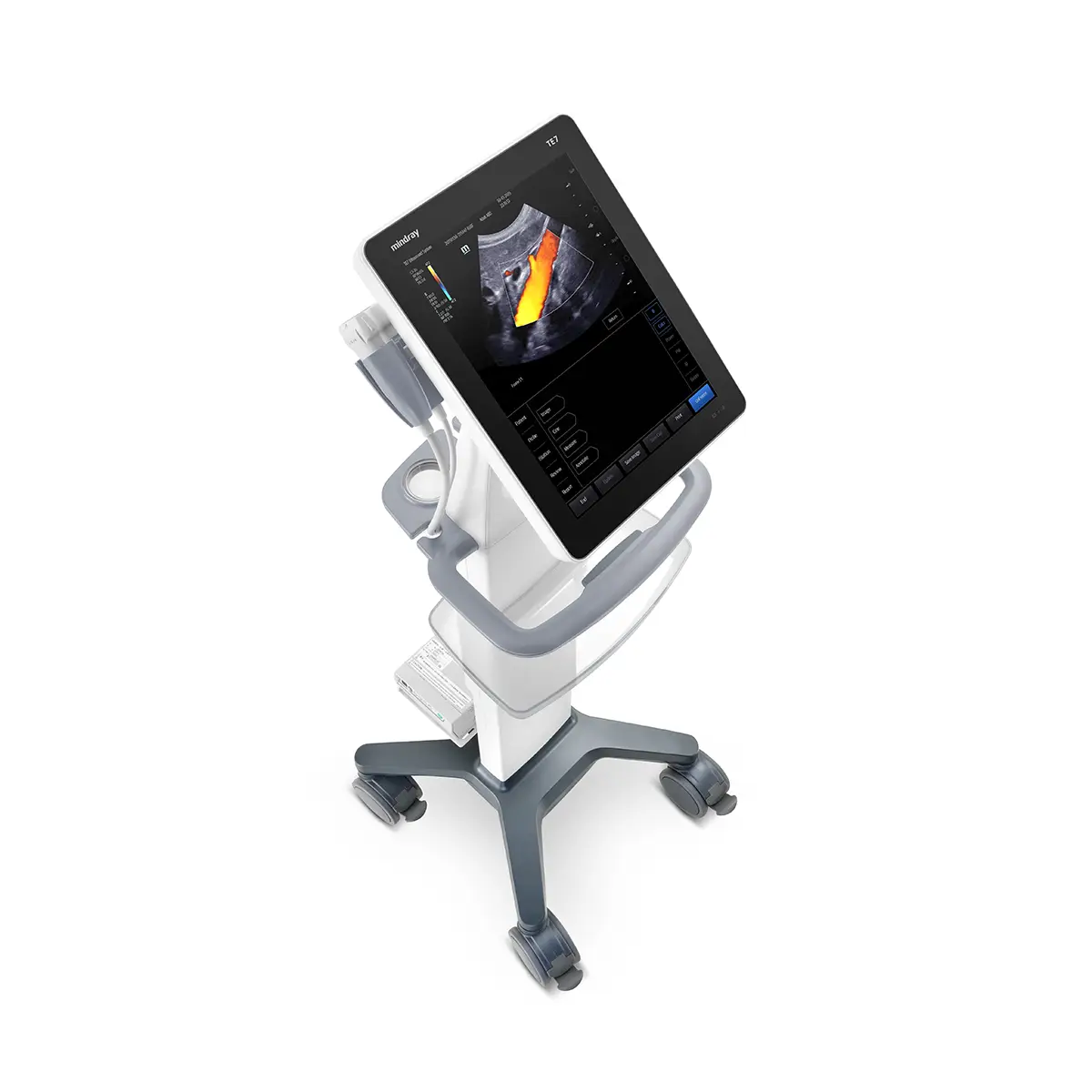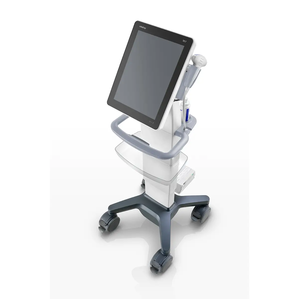 Die einfache Handhabung des fahrbaren TE7 ACE umfasst eine höhenverstellbare Haupteinheit, einen gestengesteuerten Multi-Touch-Screen und zahlreiche Extras wie vorbildliche Kabelführung, Befestigungsvorrichtungen für Zubehör und ein einziehbares Stromkabel. Der Touchscreen ist leicht zu reinigen und kann auch mit Latexhandschuhen bedient werden. Mit dem TE7 ACE macht die Bedienung dieses kleinen und leistungsfähigen Farbdopplers großen Spaß. Der TE7 ACE bietet dieselbe Leistung und Bildgebung wie der TE5 von Mindray.